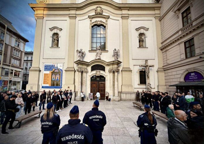 Ismét a Ferenciek terén tüntetett a múlt heti incidens után Hadházy Ákos követőivel. Ezúttal azonban a templom előtt nem az idős Ferenc atyával, hanem jobboldali hívőkkel – köztük a Betyársereg tagjaival – találták szembe magukat.