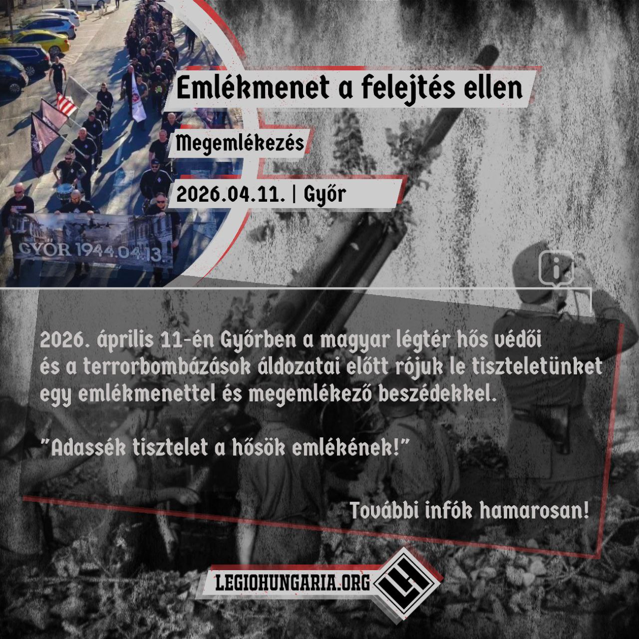 2026. április 11-én Győrben emlékement kerül megrendezésre a magyar légtér hős védői tiszteletére és a terrorbombázások áldozatainak emlékére a Légió Hungária szervezésében. További részletek hamarosan!